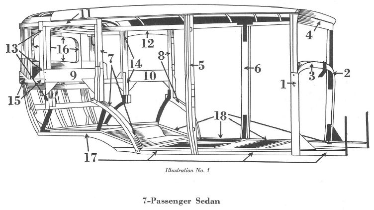 The 1926-32 Fisher Body Service Manual is extremely detailed showing wood joining types, techniques, and repair processes across all body types from coupe to 4 door sedans. It even includes repairing dents in the metal skins.