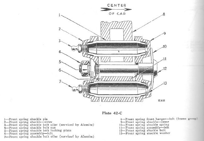 Of course I could have had the leaf springs manufactured to a size that would have been easier to find shackle parts for but in keeping with my Prime Directive of "Doing no harm". I choose to have the springs made exactly as originally constructed. This means a 3/4" front eyelet hole and a 7/8" rear eyelet hole.