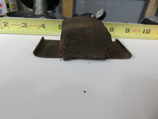 picture on the right is the leaf spring bumper. I sent this item to a part fabricator to be duplicated. The rubber is completely dried out and the bottom mounting plate is broken. This part will be recreated and re-volcanized at a cost of about $50 each. |