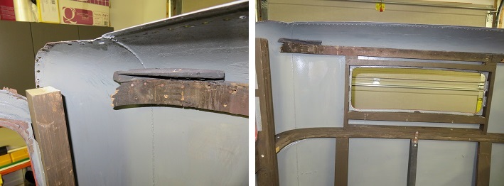 To finish off this section I will need to repair what is left of the top cross member and fit it against the rear side window frames. This wood member is tapered against the upper steel skin and is a little more complex than the previous sections. The good news is that about 70% of the old wood member is usable so I will be joining new wood to the old member in an effort to complete the rear window frame assembly.