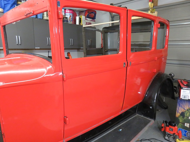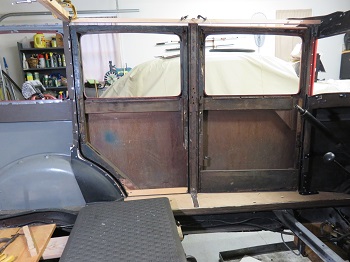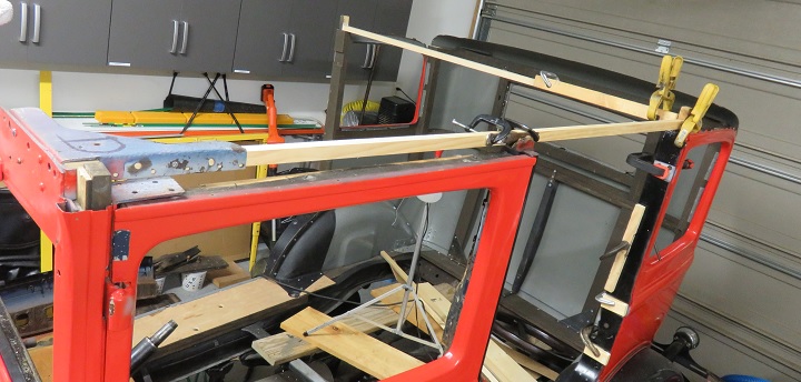 I created a frame outside of the area where the door top frame member will rest. Once both doors are installed and aligned I will create a template for the upper roof member. If everything I have done to date holds true I should be able to reverse that template for the passenger side doors.