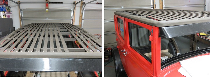 With the rear roof bow (cross member) completed all I need to do now is create the bow which sits above the windshield riser mechanism. Once this is accomplished I will be able to install the bows permanently and than install the roof lath. Of course the finish roof material will be installed after finish paint.