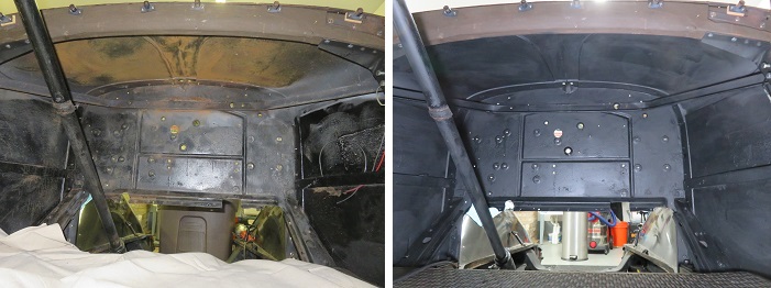 During the colder days of January and February I worked on odds and ends. During that period I completed installing the bottom steel bracket supports for the dash which completed the hardware installation. Since the floor has been created I removed the dash and cleaned up the area behind the dash and painted with a coat of flat black.