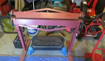 With the driver's side door wood frame repair completed and the passenger side door almost complete, I decided to start on the upper metal frame fabrication. For this repair I have a 36" wide sheet metal brake. see picture below. I am also using a Milwaukee 18 gauge electric powered shear to make straight line cuts.