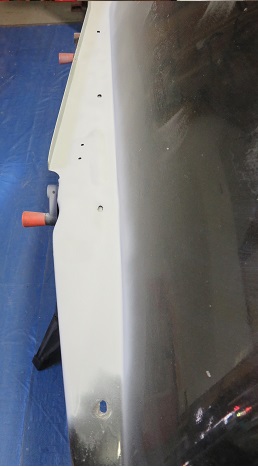 The results below were accomplished after much sanding and two applications of filler. This time I could use power tools for the bulk of the sanding on this section. This piece completes the work needed in the front section of the car.