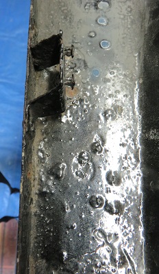 The next item I worked on was the body section under the radiator. There was some rust through that required patching as well as a general cleanup and some metal straightening prior to paint.