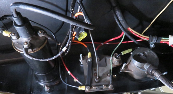 I will be installing an inline fuse connection between the dc generator and the amp gauge. I will also install another inline fuse for the ignition and accessory circuits. If you review this on your wiring diagram you will see that the battery and the generator are connected together from both sides of the amp gauge. If the generator or its wiring shorted this circuit is not fused and will draw maximum current which would create damage to the associated wiring. This has happened to me in the past and the result is a generator wire glowing like an electric stove burner. This is not good so a 15 amp fuse will protect against this type of failure and be hidden from view. In the stock wiring diagram the only circuit the barrel fuse protects is the line going to the horn and then to the lighting switch.