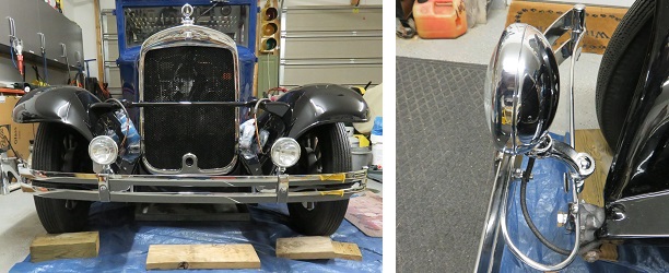 The headlamp buckets were chromed with the rest of the exterior parts. I will be rewiring them and fixing the connection points. I had previously hardwired them just to make them functional. I had used the parking lamp inside the headlamp bucket to work as a signal lamp. For this restoration I will be setting these buckets up as manufactured and rebuilding the lamp disconnect plug and socket. I have all the main parts but they are in very poor condition. I'll be using parts from the remanufactured lamp set made for the 1928-29 Model A Ford legacy 2 bulb headlight set.