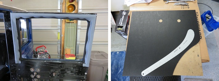 In the picture above and to the left the door edge turned out as expected. I can't install the window trim until the bottom section is completed. The bottom window trim covers the seam between the upper and lower section and must be installed after the bottom section is completed. The picture above and to the right is the bottom rear door board I created. I first did a rough trace of the door then I used a French curve to make the correct cut over the wheel well.