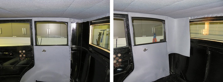Step one before I could continue with the passenger side rear I needed to install the piping and ceiling trim for the passenger rear door. I will finish the entire door at a later time. My main goal at this point is to complete the rear seat and rear window area. This is the most difficult area due to the angles and curves. Completing the doors will be relatively easy in comparison.