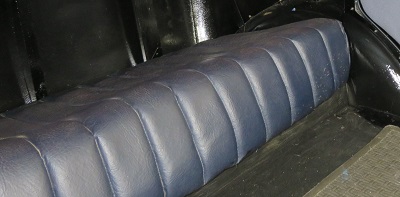 The seat back is sitting a little high because I haven't permanently installed it but rather just placed the seats into the car to see how they look and feel. The new springs in the seat bottom along with the high density foam pad made for a very comfortable rear seat. I'm very happy with how this all turned out.