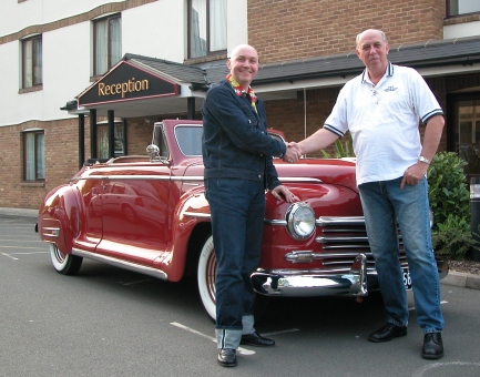 Robin & I met at the Fox & the Goose hotel in Wembley, London. Robin is on the left. I am on the right and the 47 convertible is in the middle. |