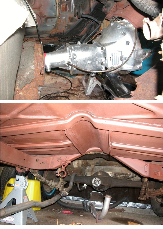 Sunday June 5, 2005Saturday, I reinstalled the transmission. New Clutch, Pressure Plate, Throw-out Bearing, and Pilot Bushing. Flywheel was turned true by Napa. Fired the motor up and ran it through the gears.., its working just great & no leaks. I made a new gasket using the old one as a template. Sunday, I scraped, cleaned, wire brushed, and washed with solvent the under carriage back to the rear axel well. I painted it with Rust-Oleum primer. I also worked on the brake lines. If you haven’t replaced yours yet.., I highly recommend it. It’s easy and the materials cost me less then $25.00. |