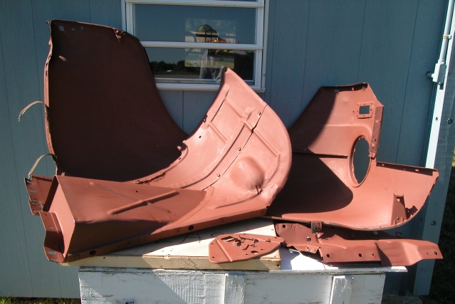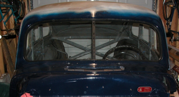 Installing the windshield I held the glass in place while my wife worked the exterior seal. I gave her every tool imaginable but she preferred to use her fingernail to work the rubber around the metal. She is quite a helper and after all these years she has become a very good innovator. With the firewall painted with the finished color the exterior paint should blend nicely. |