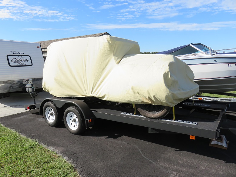 So here she sits awaiting a call from the Delaware State Police Auto Theft officer.  Since the body plate was lost and replaced with a new plate the car has to be inspected by a state police auto theft officer.   If I'm going this route I have already informed them that the Title year and VIN number is incorrect.  So I am awaiting a call to sit down with them and lay out my case.  The DMV lady said she can trace the car back to the state and person I purchased the car from in 2006.  I guess if I am going to restore the car I might just as well restore the proper FEDCO VIN number.  Worse case they keep it under the Body ID number.  So until I can get this all straightened out she will sit on the trailer.  Just too hard to take her off and on again.