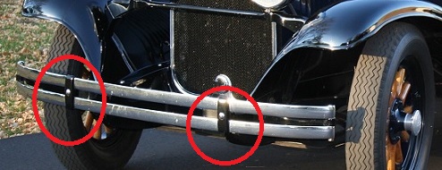 "Bumper: 1928 had double chrome bars with two grooves painted black; 1929 had double chrome bars.