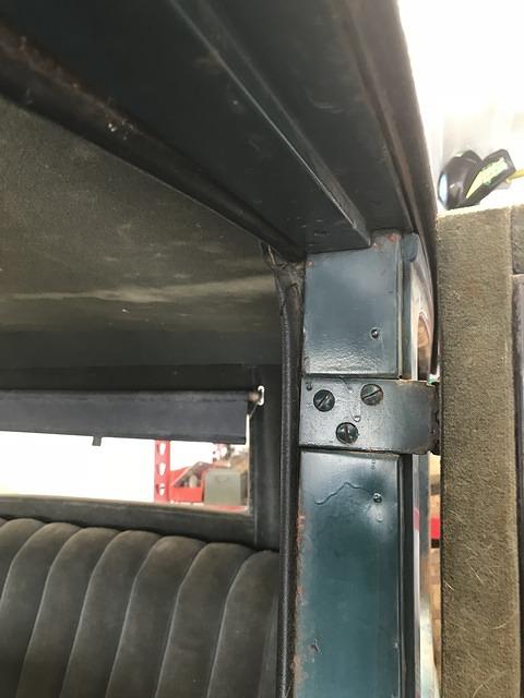Hi Chet.  I have some pictures attached of my '29 coupe that may help you.  One picture shows the P-side door frame with windlass-type seal along the inside edge of the door opening.  This picture also shows the 4-piece garnish molding around the rear window.  Also note above the upper left corner of the rear window (L in picture) one of the two hangers for the roll-down type rear window shade.  I do not remember that there was any weatherstrip anywhere in the door jambs or door frame but I could be wrong about that.  The pictures don't show any evidence that a rubber seal was ever there however.  If I find a picture that clearly shows the hinge post and open door, I will send it along.  Kim