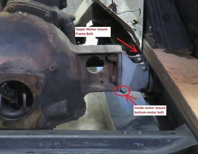"...which attached to the passenger side rear motor mount frame bolt and also attached to one of the two bell housing bolts that attach the bell housing to the motor mount."
