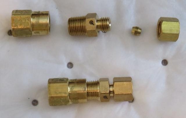Chet - re-used fittings that were there - fittings on copper line were of a ball design soldered on. Best I can explain is that they looked something like 1/2 compression ferrule.  We just unsoldered and re soldered them on new line.  I might be able to make them on lathe.  Is this what you have?